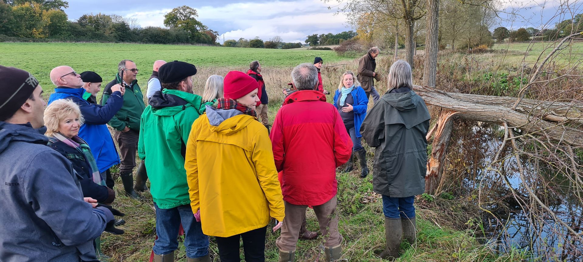 The influential Forestry and Woodland Advisory Committee, who advise the Forestry Commission on policy and practice relating to woodlands held their October meeting in Finchingfield and followed it with a tour of the estate. Sarah Brockless, our ecologist, led the group through our ancient woodlands, woodland creation areas, agroforestry and beaver enclosures.